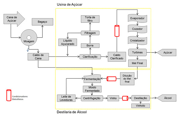 O tratamento eletro-físico do caldo de cana, prevê a instalação de equipamentos emissores de radiações eletromagnéticas com comprimento de onda menor do que a luz visível e maior que os raios X, e com capacidade para produzir alterações físicas quando absorvidas por substâncias orgânicas.